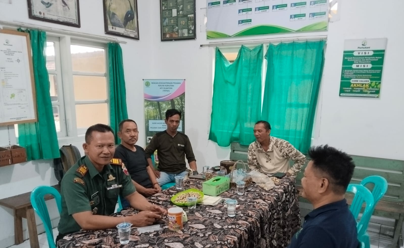 Pertemuan Komandan Rayon Militer (Danramil) Rejoso di Kantor Asper/BKPH Tritik KPH Nganjuk Desa Rejoso Kecamatan Rejoso Kabupaten Nganjuk. (istimewa)
